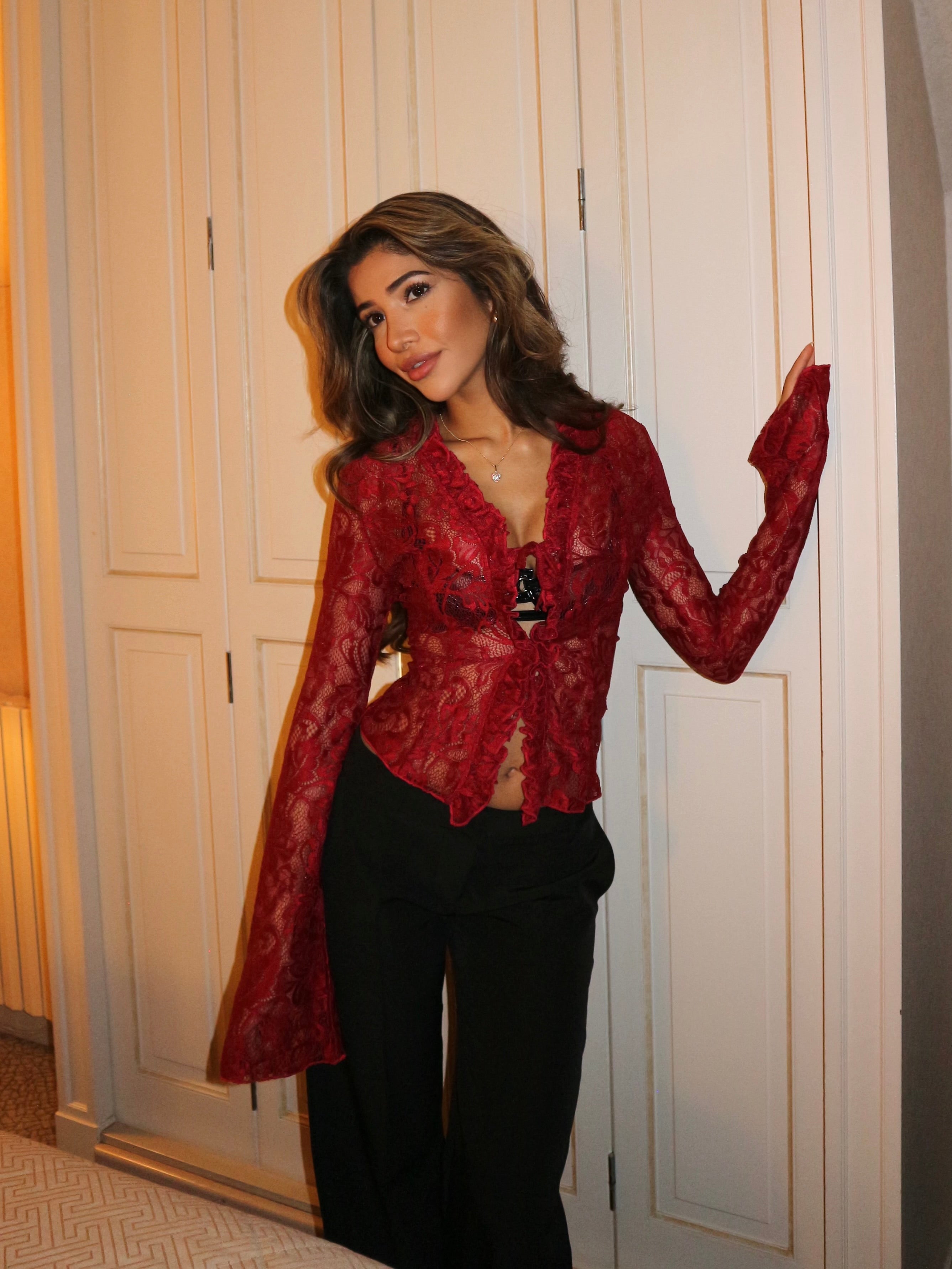 A red blouse for ladies is the perfect choice when you want to add a touch of elegance and femininity to your outfit. A red blouse is the epitome of elegance and femininity and an unrivaled combination of strength and grace. The vibrant red color highlights your natural beauty and adds a touch of glamor to any outfit and with fine details such as lace, silky fabrics or discreet ruffles, a red blouse can easily transform your look from ordinary to extraordinary.