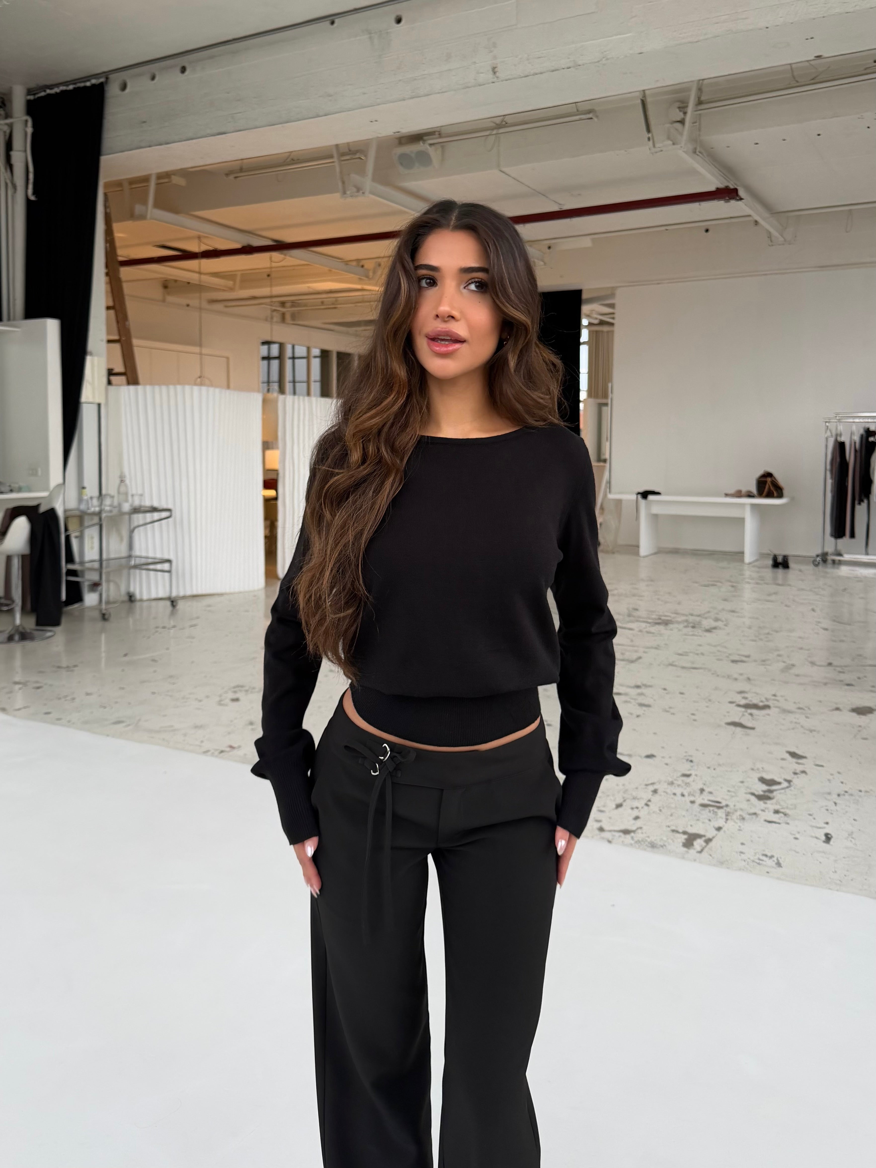Beautiful knit top in the softest wool blend. The top has plenty of stretch and fits nicely to the body. It features long sleeves and an open back with a tie detail.