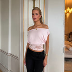 Beautiful lace top in material with a lot of stretch, which fits the body nicely. The top can be set in different ways, as desired.