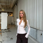 Cardigan in the softest material, made from a wool blend. It has buttons and sits nicely on the body.