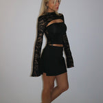 Beautiful lace top made from a highly stretchy material that fits nicely to the body. The top features long sleeves with lace at the top as well as an entirely lace back.