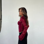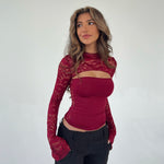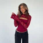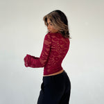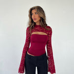 Beautiful lace top in material with a lot of stretch, which fits the body nicely. The top has long sleeves with lace at the top and along the entire back.