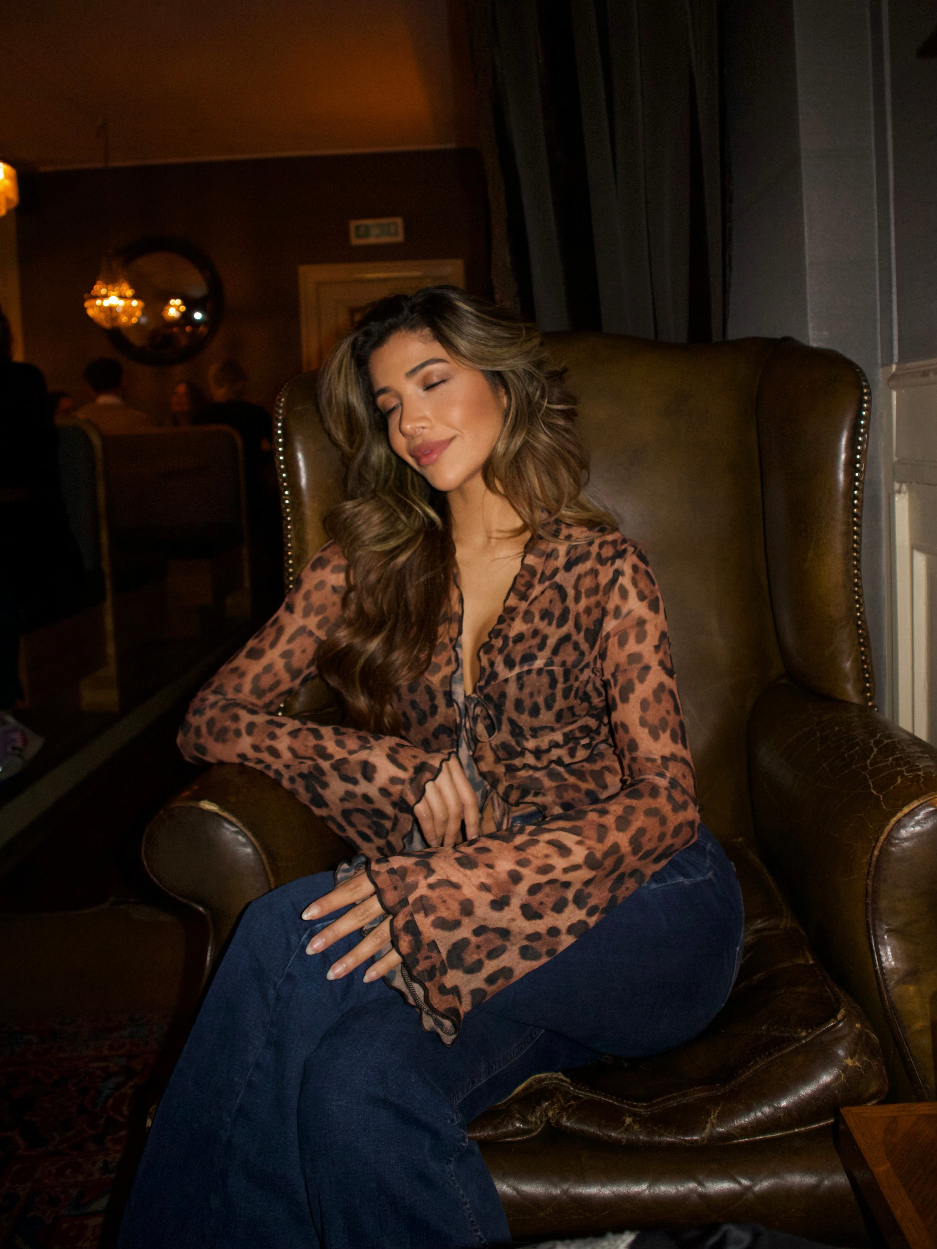 Beautiful leopard mesh top with ties and long sleeves. The top is made of a soft mesh fabric that is very comfortable to wear. The top is transparent.