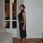 Skirt in the softest basic material with lots of stretch and a beautiful lace trim at the waistband. It drapes nicely and fits true to size.