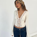 Beautiful basic lace top with buttons and long sleeves. The top is made of a soft material that is very comfortable to wear. The top has a lace edge.