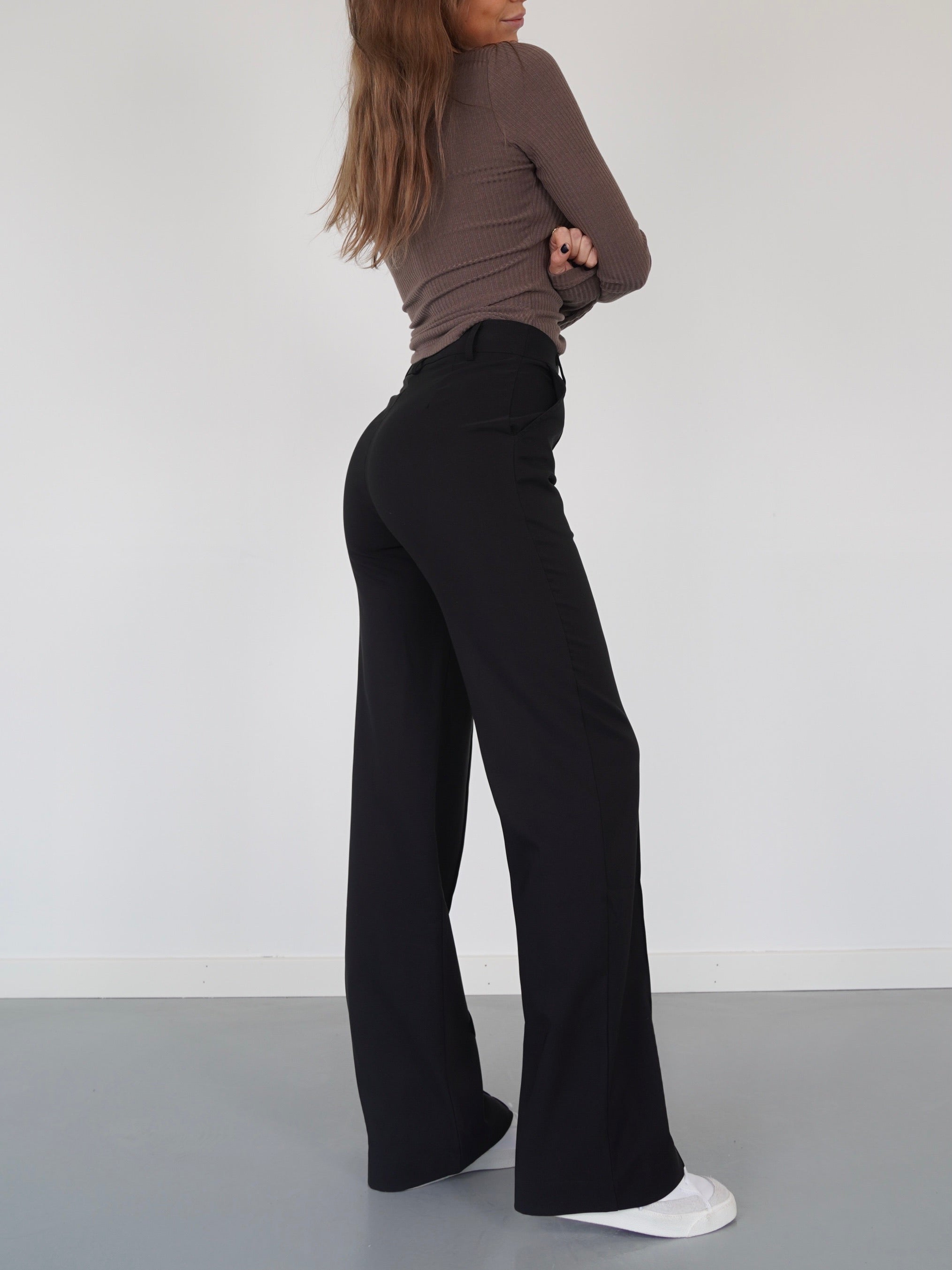 Our high-waisted, wide-leg Vera Wide trousers are available in black, so you can get a pair of classic trousers that you can combine with any number of tops for just the look you want. The trousers are also made of comfortable materials, so they are comfortable to wear and at the same time fit nicely.