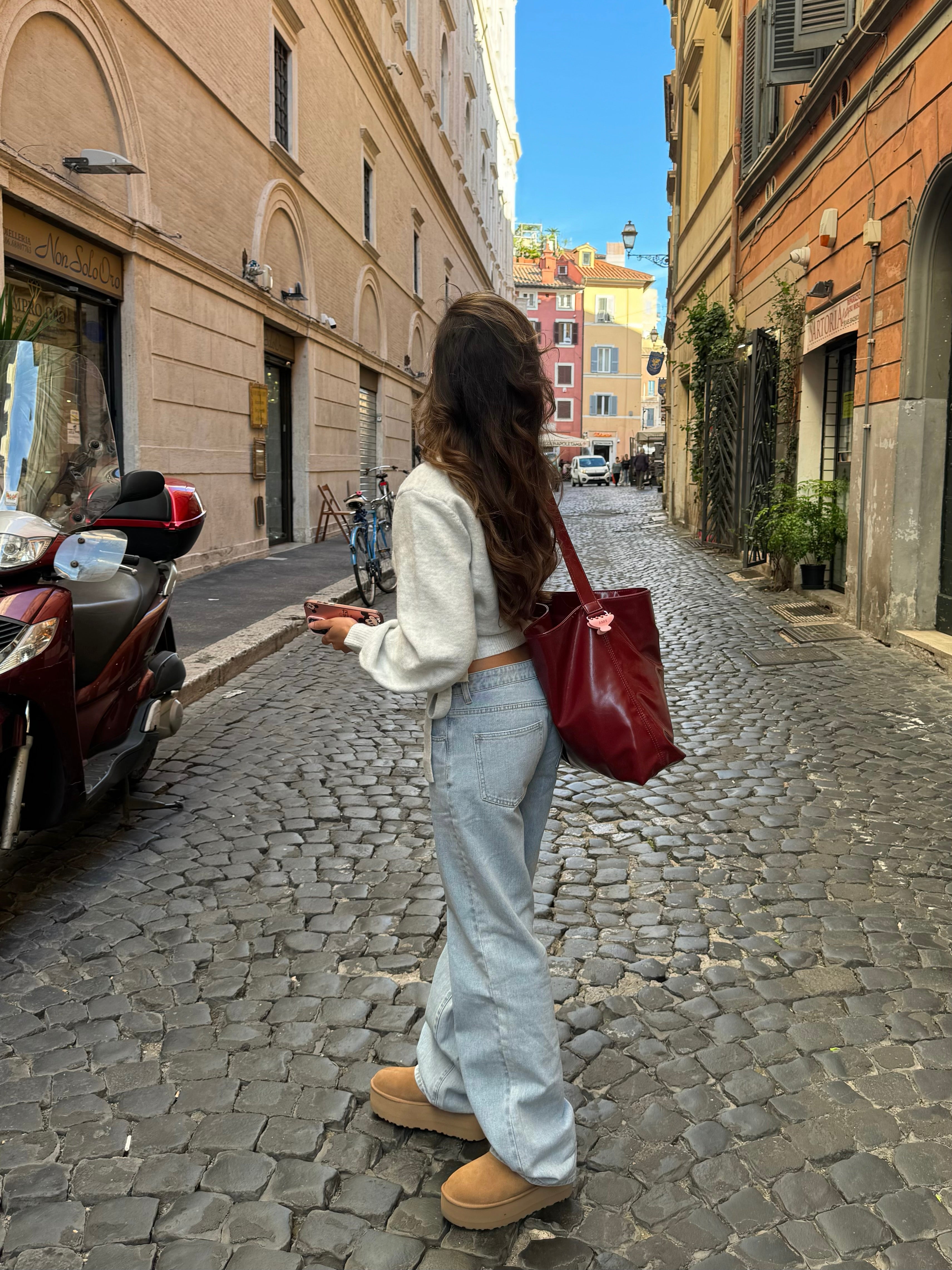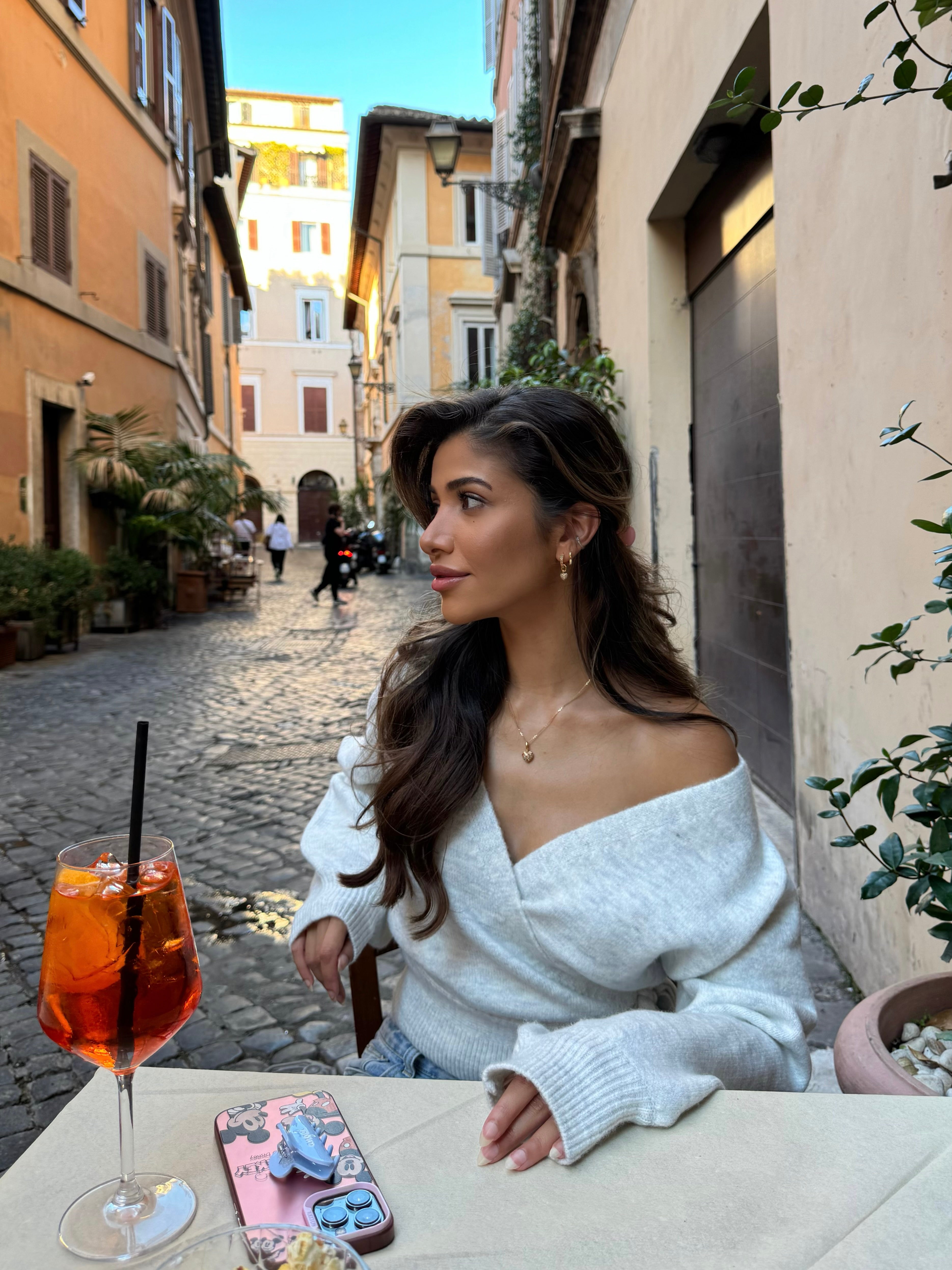 Cardigan in the softest material, made from a wool blend. It is tied at the side and can be tightened as desired.