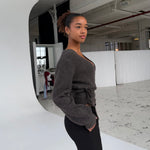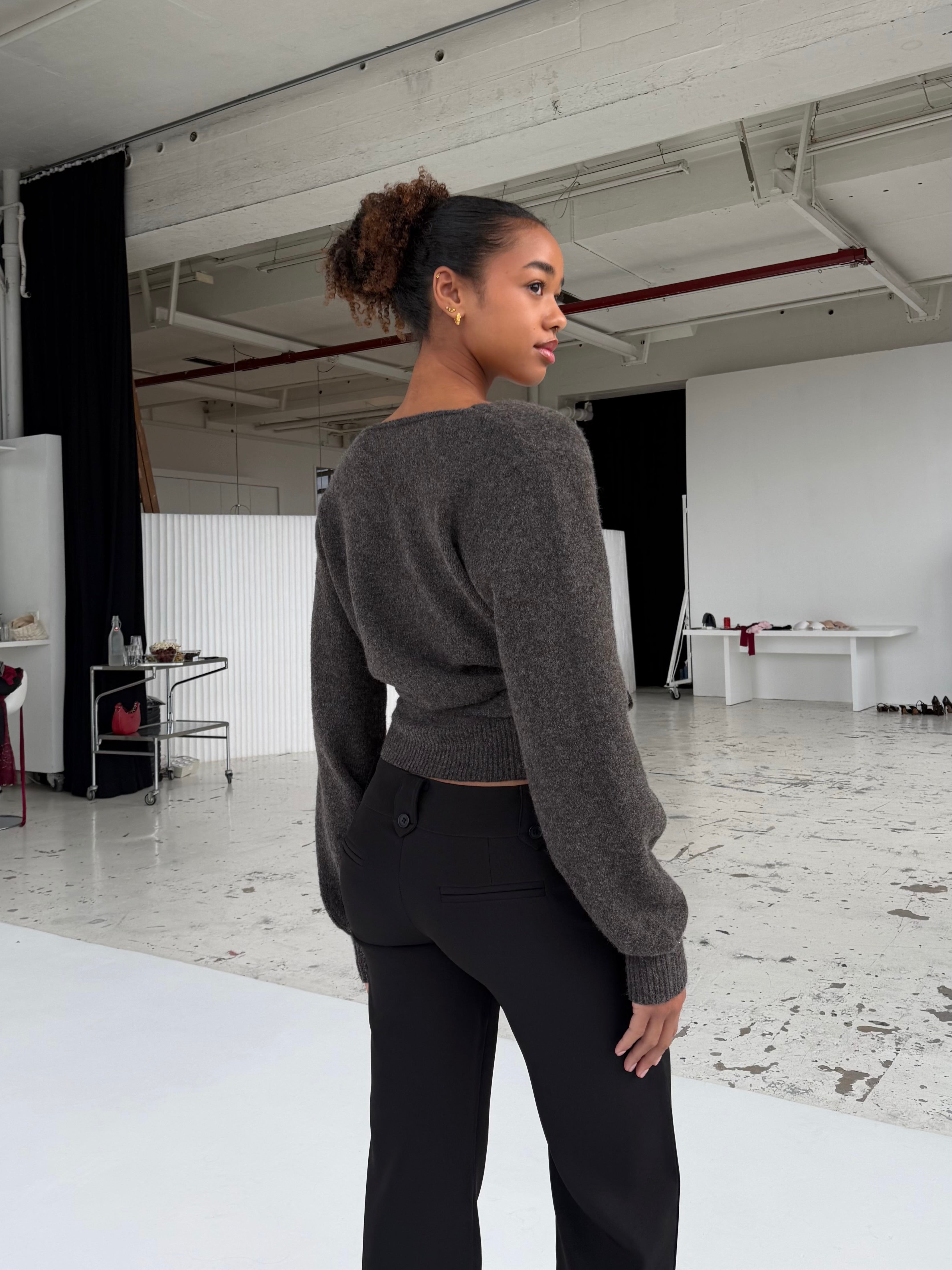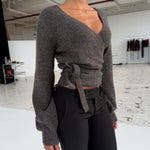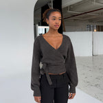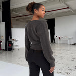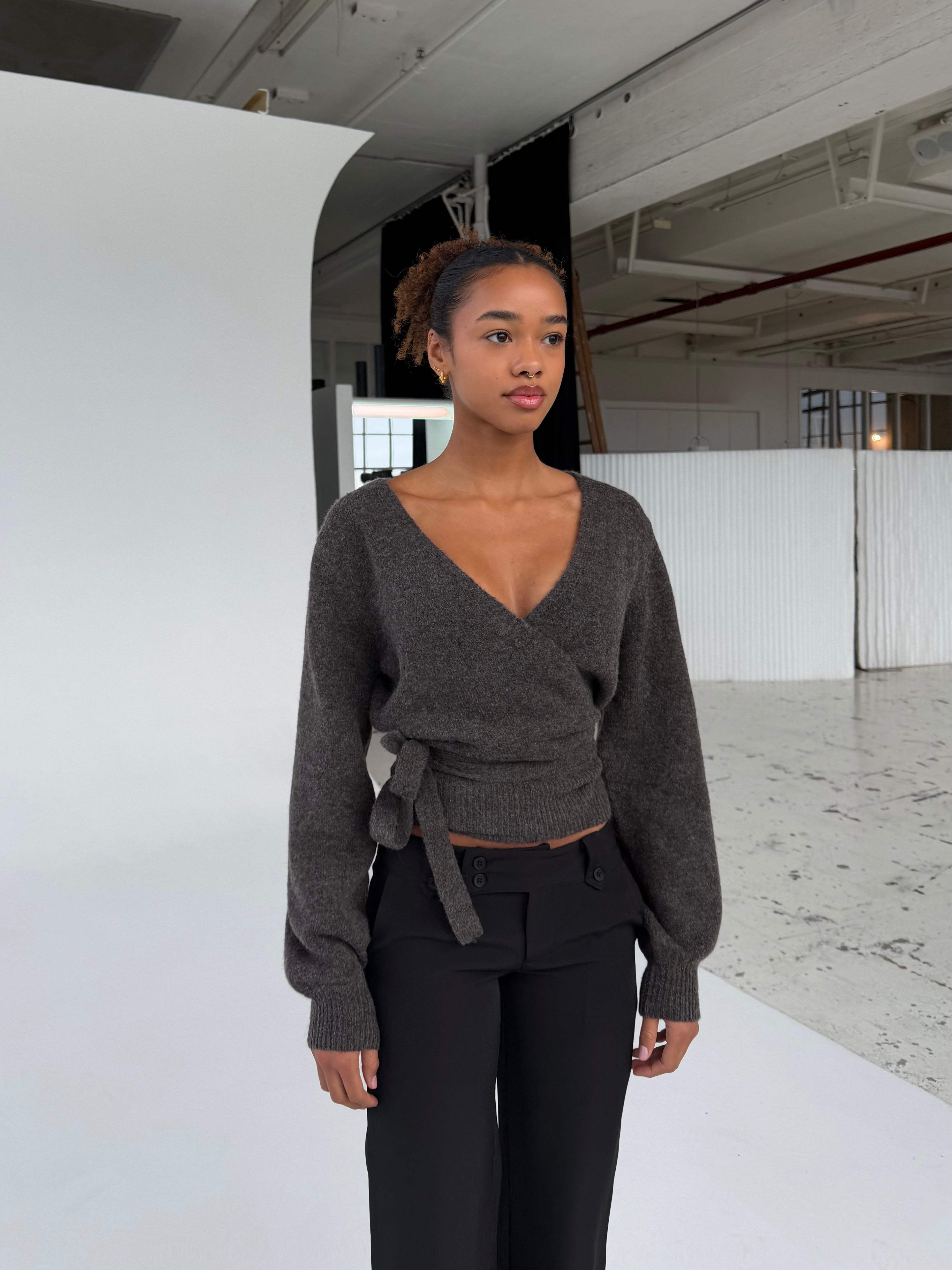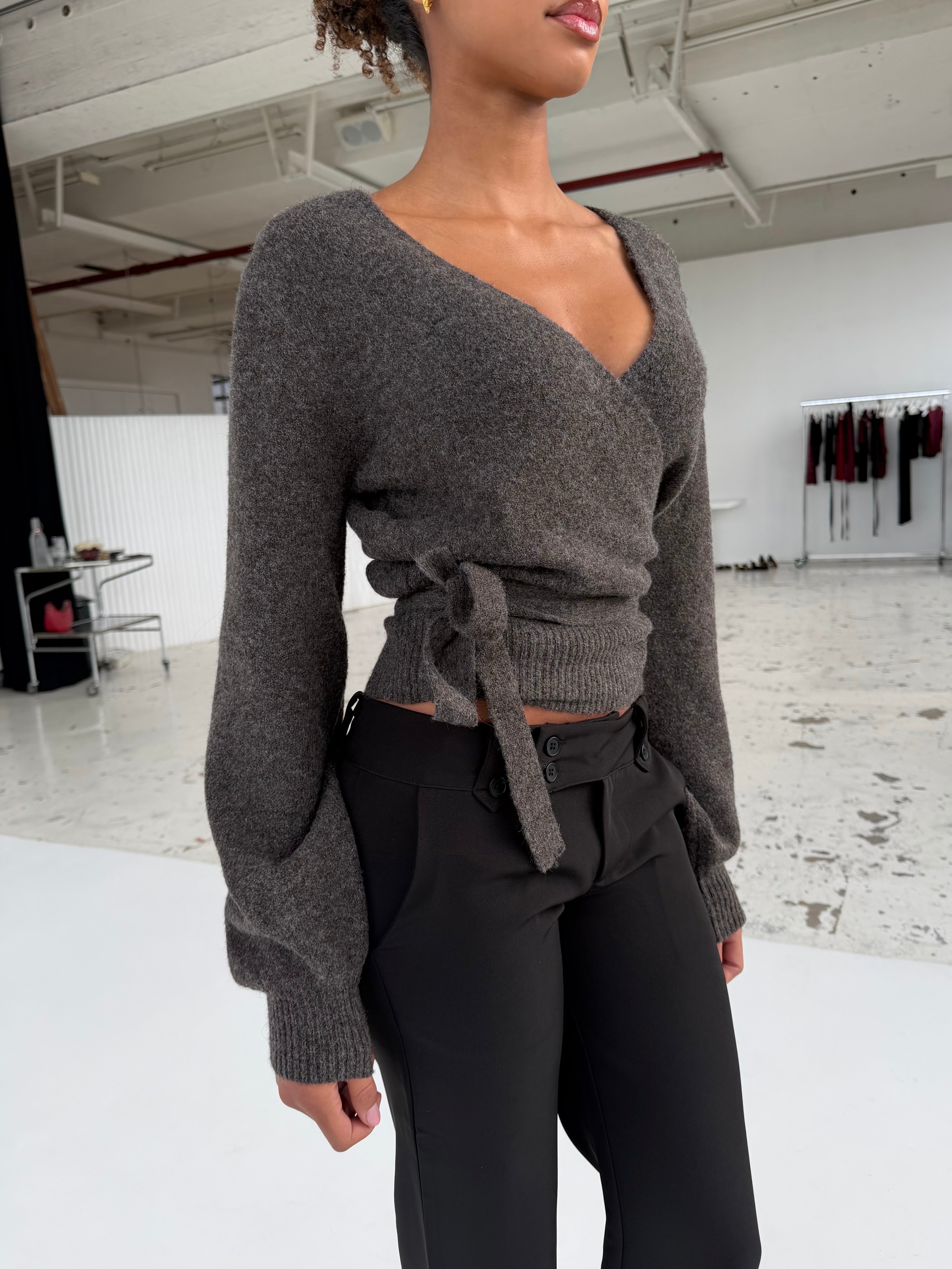 Wool blend wrap cardigan - Dark grey/brown (pre-order)